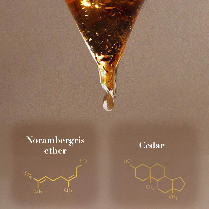 EXTRACTOS VEGETALES: Infundido con extractos naturales como el cedro y el éter de norambregris, este perfume ofrece un aroma rico y terroso que añade sofisticación y profundidad a la fragancia.