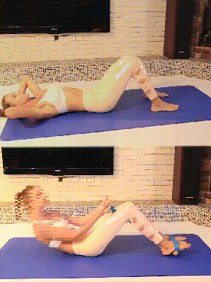 Presiona los pedales, siéntate sobre tus pantorrillas, mantén la espalda recta y sujeta las asas en direcciones opuestas.