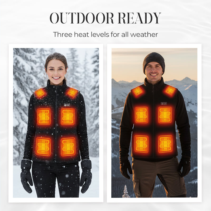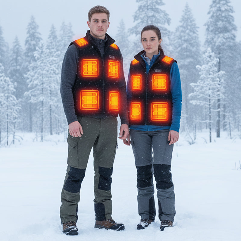 CALEFACCIÓN INTELIGENTE: Con 10 zonas de calor y controles de doble botón, este chaleco permite ajustar frontal y trasero de forma independiente. Regula el calor exactamente donde lo necesites, garantizando confort todo el día en invierno.