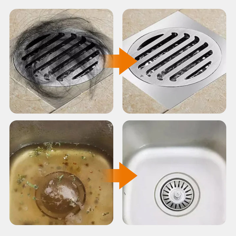 DRAGADO FUERTE - Este potente desatascador de cañerías está formulado con partículas concentradas que proporcionan un fuerte poder de dragado para descomponer y desintegrar rápidamente y eficientemente materia orgánica, grasa y otras obstrucciones. También incluye componentes de enzimas biológicas que pueden descomponer materia orgánica, grasa, etc., en tuberías obstruidas. Es fácil de usar, ¡solo un paquete resuelve el problema de la obstrucción!